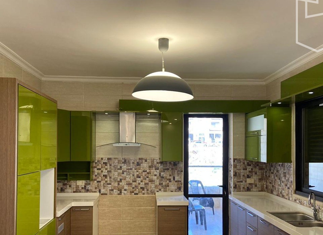 (صالون واسع ، صالة ، ٣ غرف نوم ، ٣حمّامات ، غرفة خادمة , مطبخ مودرن فاخر ، مستودع ، شفّاط ، أبواب صولد فاخرة ، أباجورات كهرباء ، تدفئة روديتر ديزل ، بلكونة واسعة ، جبسمبورد كامل الشقة ، مصعد)
